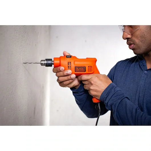 A furadeira de impacto BLACK+DECKER BED710550 combina potência e compacidade para entregar o máximo desempenho em tarefas diárias. Equipada com motor de 550W, velocidade variável de até 3.000 rpm e até 48.000 ipm, garante perfurações rápidas e precisas em madeira, concreto e metais. Conta com mandril de 3/8” (10mm), seletor de impacto e gatilho de dois dedos com função reversível e trava, aumentando o conforto e controle. Seu design moderno, mais ergonômico e 17% mais compacto que a geração anterior, facilita o uso em todas as direções. Ideal para quem busca potência com praticidade. Disponível em 110V