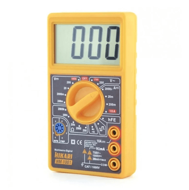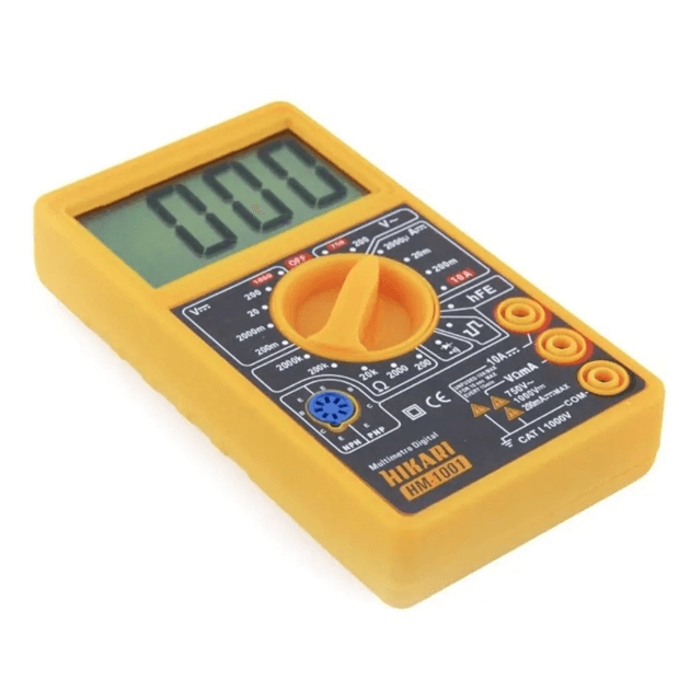 O Multímetro Digital HM1001 é a ferramenta ideal para quem precisa de medições elétricas precisas e confiáveis. Com display digital de fácil leitura, ele oferece funções como medição de tensão, corrente e resistência, além de testes de continuidade e diodo. Compacto e de fácil manuseio, é perfeito para profissionais e entusiastas da eletrônica.